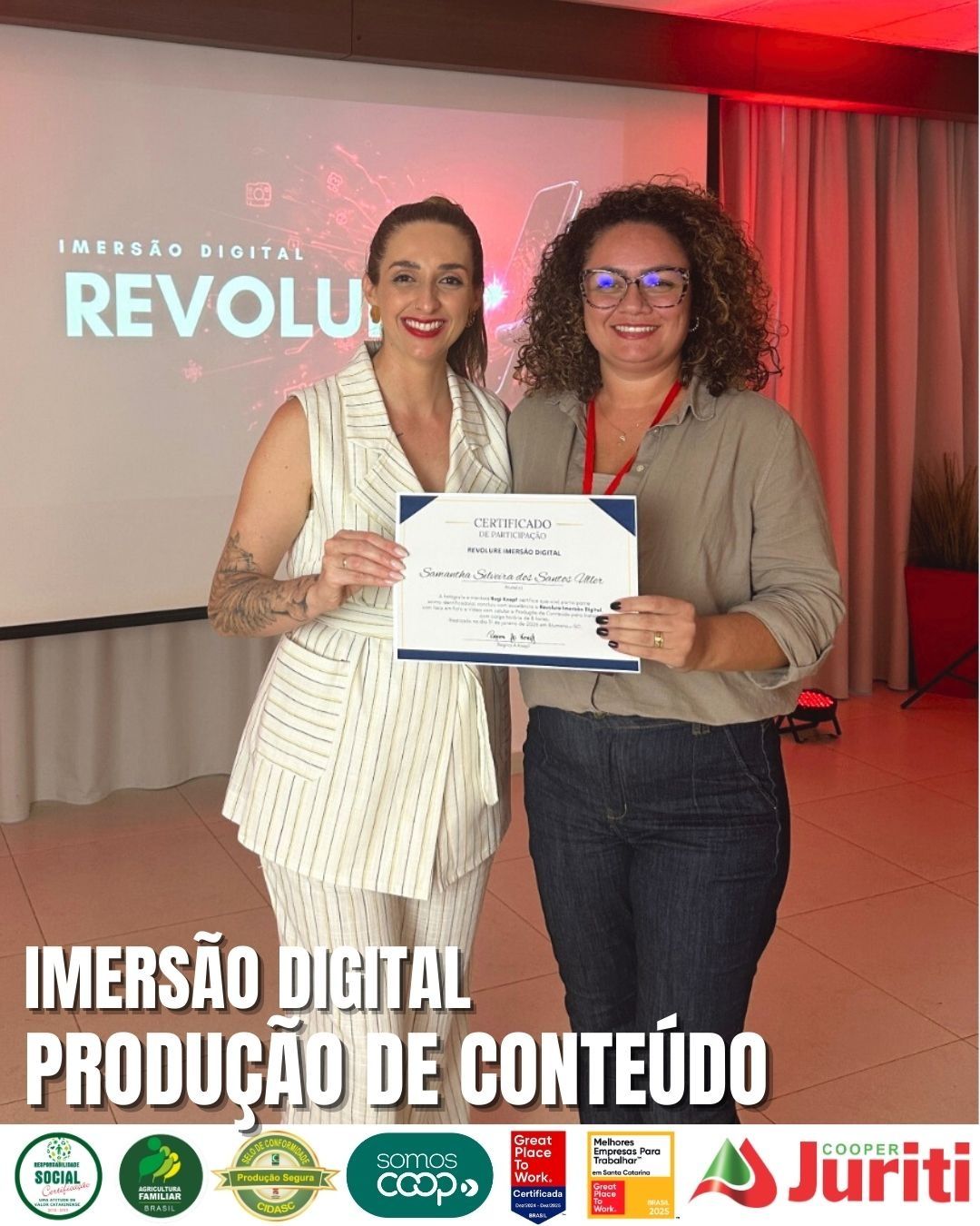 No último sábado, a Analista de Endomarketing, Samantha S. S. Uller, participou de um curso de imersão digital com foco em fotografia e produção de vídeos para a plataforma Instagram, realizado no município de Blumenau/SC.