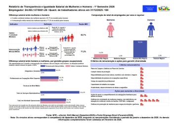 Já esta disponível o Relatório de Transparência e Igualdade Salarial de Mulheres e Homens do 1° Semestre de 2026.